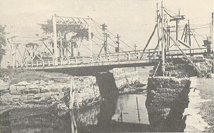 ![]() Blynman Bridge (looking toward the harbor) in 1900 swung upriver on a hand-cranked turntable at left. The ledge beneath, not yet blasted out, made the Cut unnavigable at low water. Blynman Canal There is an excitement about the Cut, which is what we call Blynman Canal. Go there day or night, any seasonwhen an easterly slashes rain across and whips up spray from the surf smashing on the seawall, or when the June sun sparkles on the harbor and they cast the blossoms on the ebb for the souls of the men who went down to the sea and did not return, or in the fullness of the evening when the rising moon profiles Eastern Point and sheds diamonds on the water. The red lights flash on, the siren screams, the gates swing across the boulevard, the gears grind, and the jaws of the drawbridge crack open to let a fishing dragger through. For a few minutes Gloucester is almost an island. Then the jaws descend and shut with a toothsome click, the gates swing clear, and the line of summer traffic drones across again, always with that urgency: can we make it before the next one shuts us off? Especially before Route 128 spanned the river in 1953, the Cut bridge has symbolized Gloucester's isolation and contrariness. Since 1907, when the state dredged the channel and rebuilt and electrified the bridge, the machinery has waited, as if it had a life of its own, to get stuck half way up or down on sunny summer Sunday afternoons, each time requiring a citywide search for Sylvester Deering, the only electrician in town who talked its language. Before that, back to just after the Civil War, when the canal was reopened, the bridge was cranked or swung by hand, and some local magician with a different bag of tricks had to conjure with it. In 1643 the town gave Pastor Blynman permission to cut a ditch through the isthmus between the Annisquam River and the harbor and to build the first swinging bridge over it. Blynman's "cut" could save a hard outside ocean passage around Cape Ann to Squam or the eastward, or could float wood to the harbor from the western hills, and skippers paid him toll, willingly or not. However, a storm filled his cut with sand in 1704; it was cleared, only to fill again in 1723. It was another hundred years before the Blynman Canal was re-opened in 1823, with a drawbridge whose backers had high hopes for steam. But the river turned out to be too narrow for steamboats and too hazardous for all but the smallest craft to sail. Moreover, the Eastern Railroad insisted on a fixed bridge upriver for its new Gloucester branch from Salem in 1847. Consequently, in 1848 the canal was filled with a solid east-west roadway. Not for twenty more years was all at last resolved when for the fourth time the Cut was opened and bulkheaded, and another bridge built, all for the purpose of passing boatloads of granite through from a new quarry on Wolf Hill. Reasoning that what couldn't flow over could run under, the Gloucester Water Supply Company a hundred years ago built the big brick tunnel under the Cut that carries the mains from Bond Hill reservoir and other utilities to town. So for a hundred and twenty years of its three hundred and fifty, Blynman Canal has been no canal at all. |